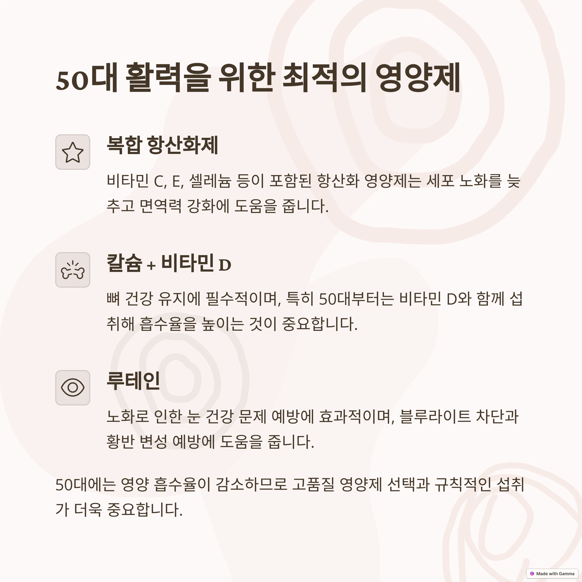 - 3. 50대 남성: 노화 방지와 건강 유지에 필수적인 영양제 선택