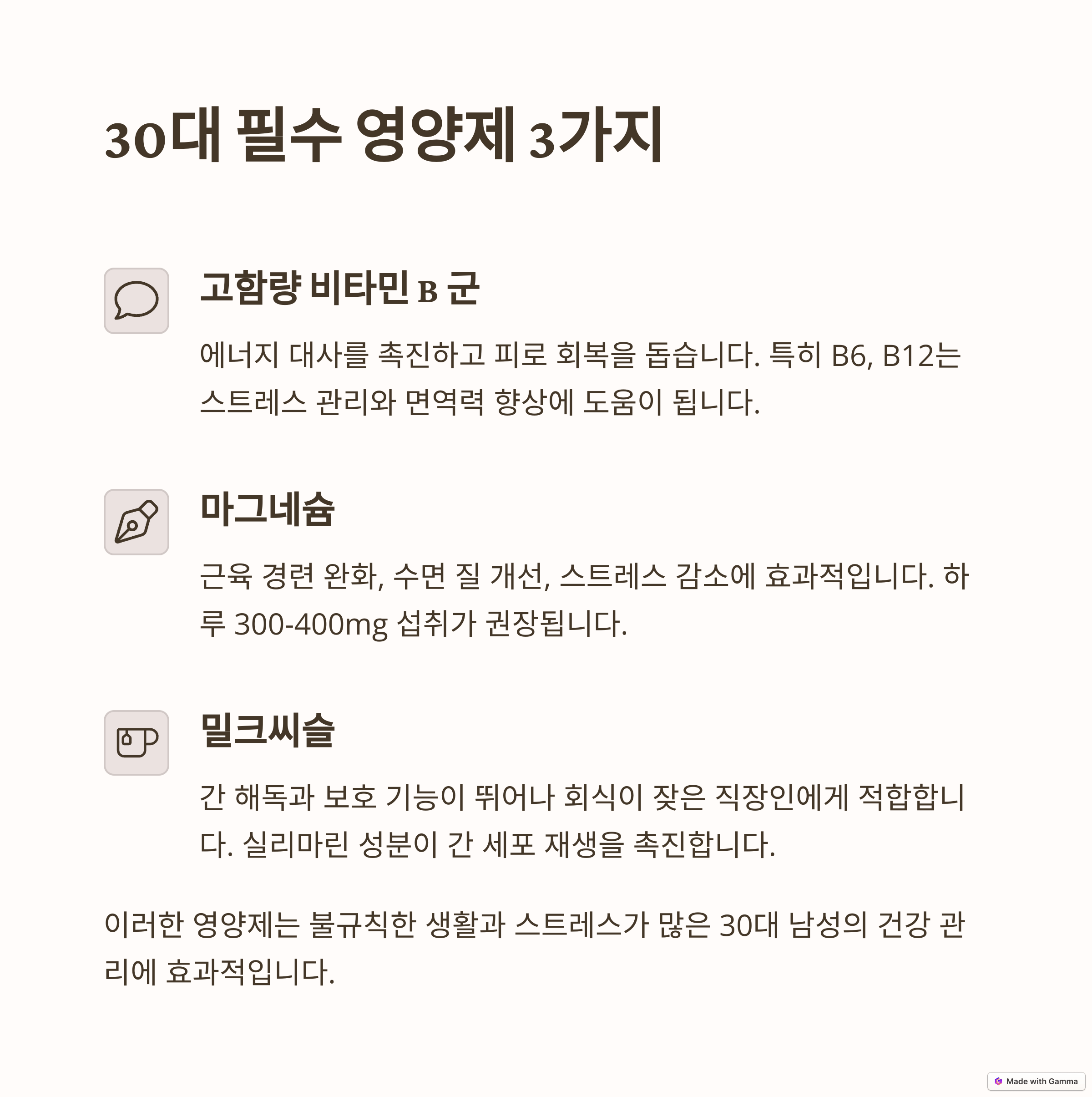 1. 30대 남성: 활력 유지와 스트레스 해소를 위한 영양제 선택