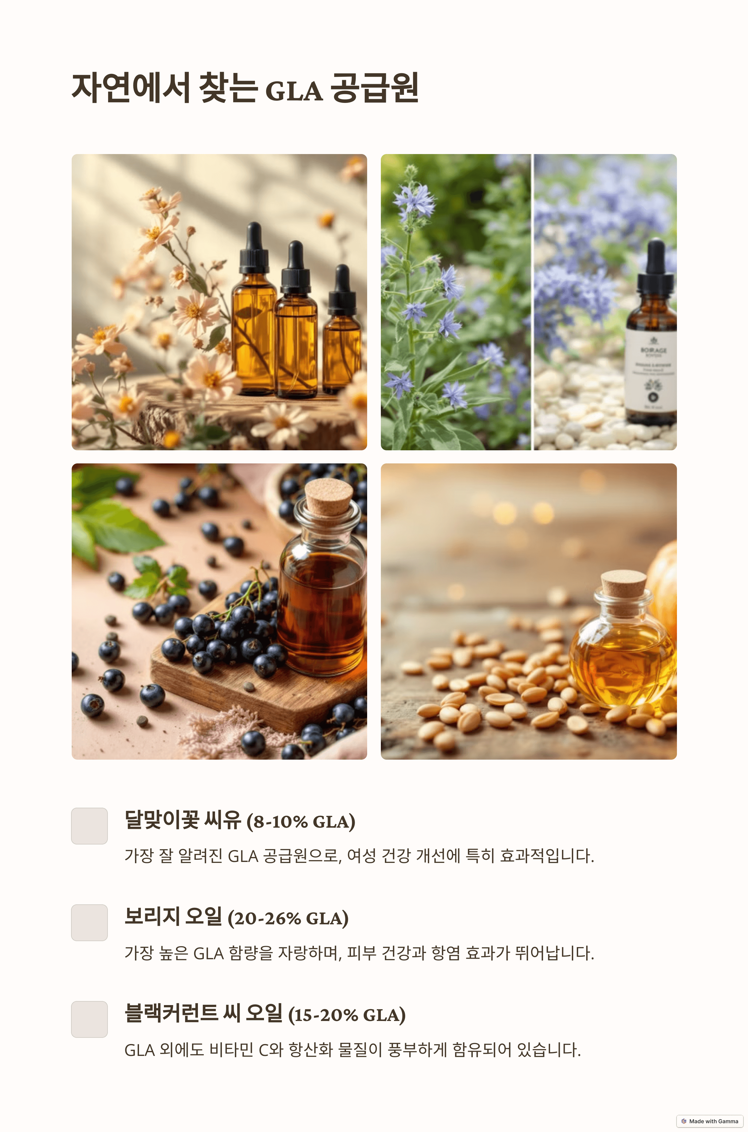 - 감마리놀렌산 섭취 A to Z: 음식, 보충제, 그리고 전문가의 꿀팁