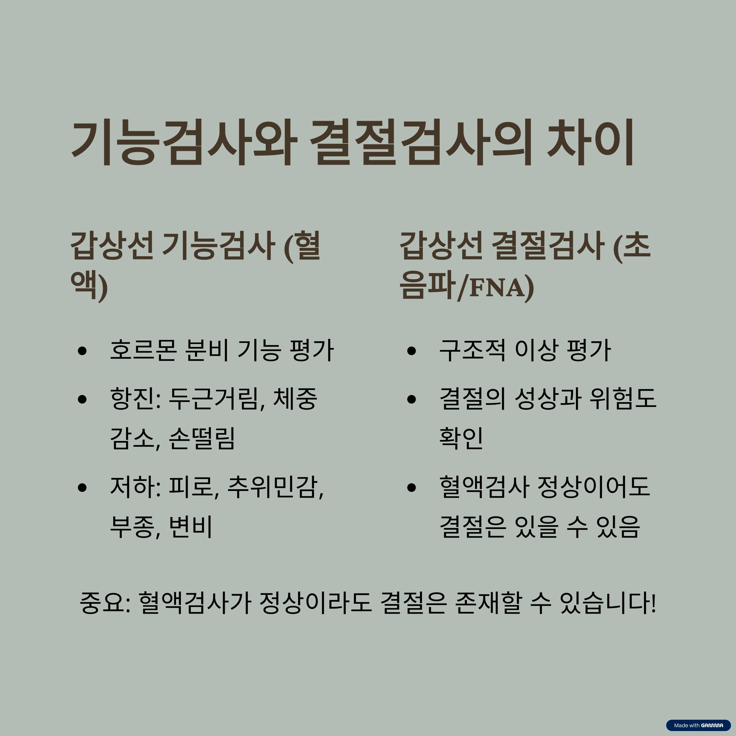 기능검사와 혼동 주의: 혈액검사 정상이어도 결절은 있을 수 있어요