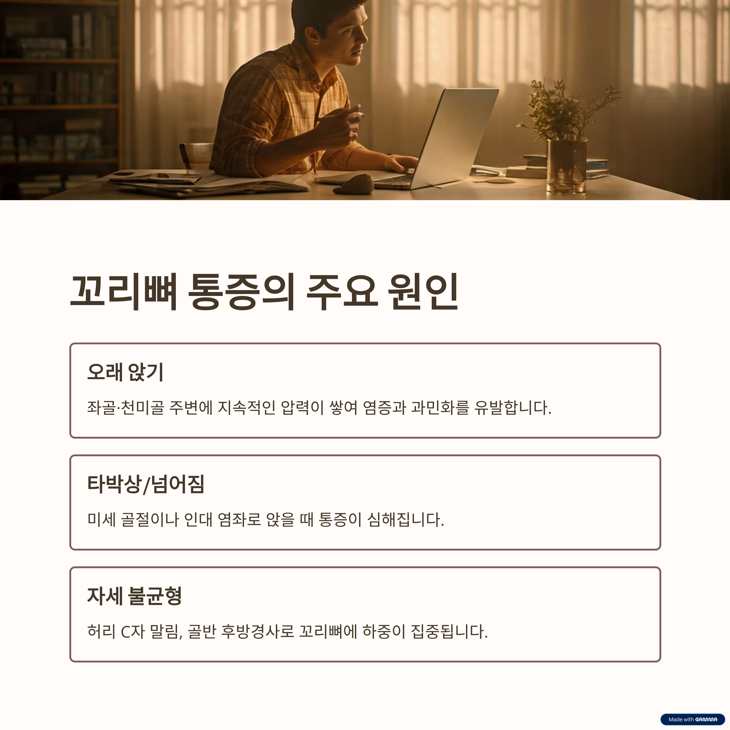2. 꼬리뼈 통증 원인 총정리: 오래 앉기, 타박상, 자세 불균형