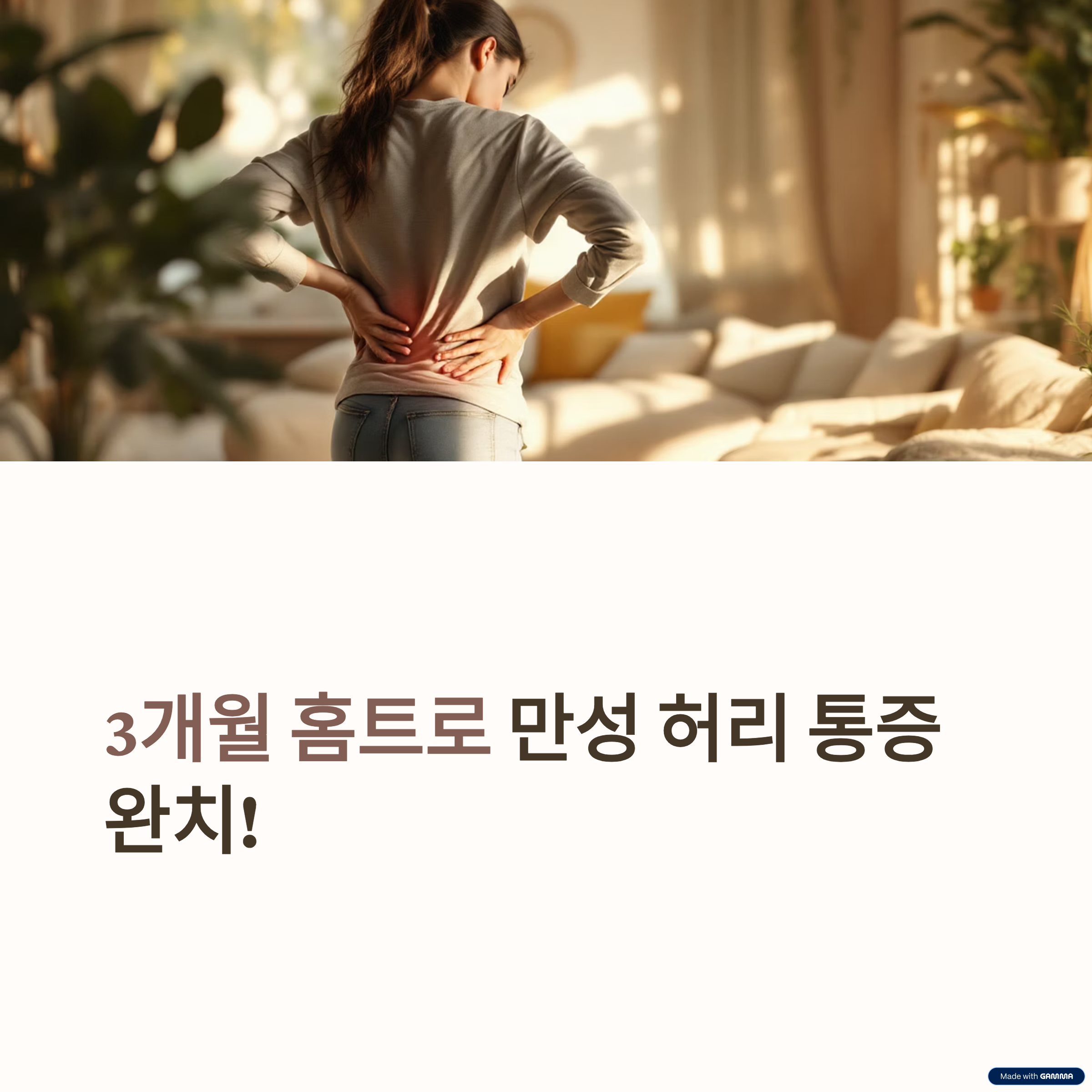 허리 통증으로 고생하던 제가 2026년, 3개월간 꾸준한 홈트레이닝으로 통증에서 벗어난 생생한 경험담을 들려드립니다. 병원 치료로도 나아지지 않던 고질적인 허리 통증을 집에서 쉽고 안전하게 관리하며 건강한 일상을 되찾은 저의 비법과 구체적인 운동 루틴, 그리고 생활 습관 변화까지 모두 공개할게요!
