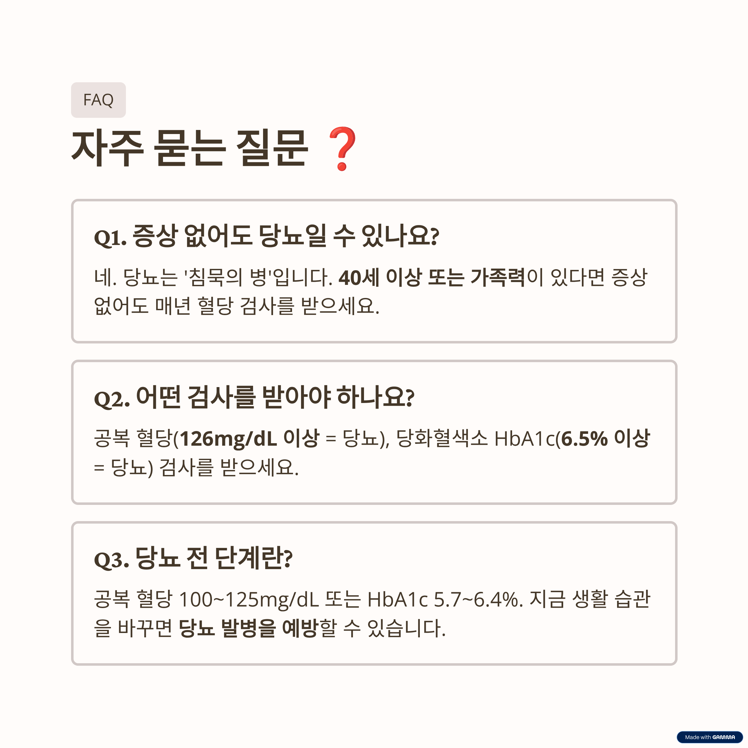 Q1: 초기 증상이 없어도 당뇨일 수 있나요?