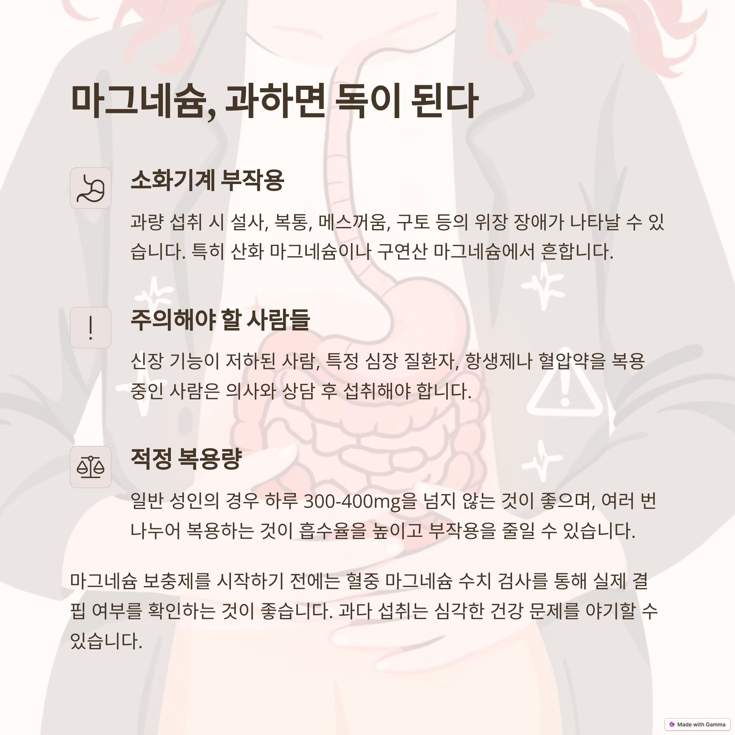 - 마그네슘 섭취 시 주의사항 - 과다 섭취 시 부작용 및 약물 상호작용