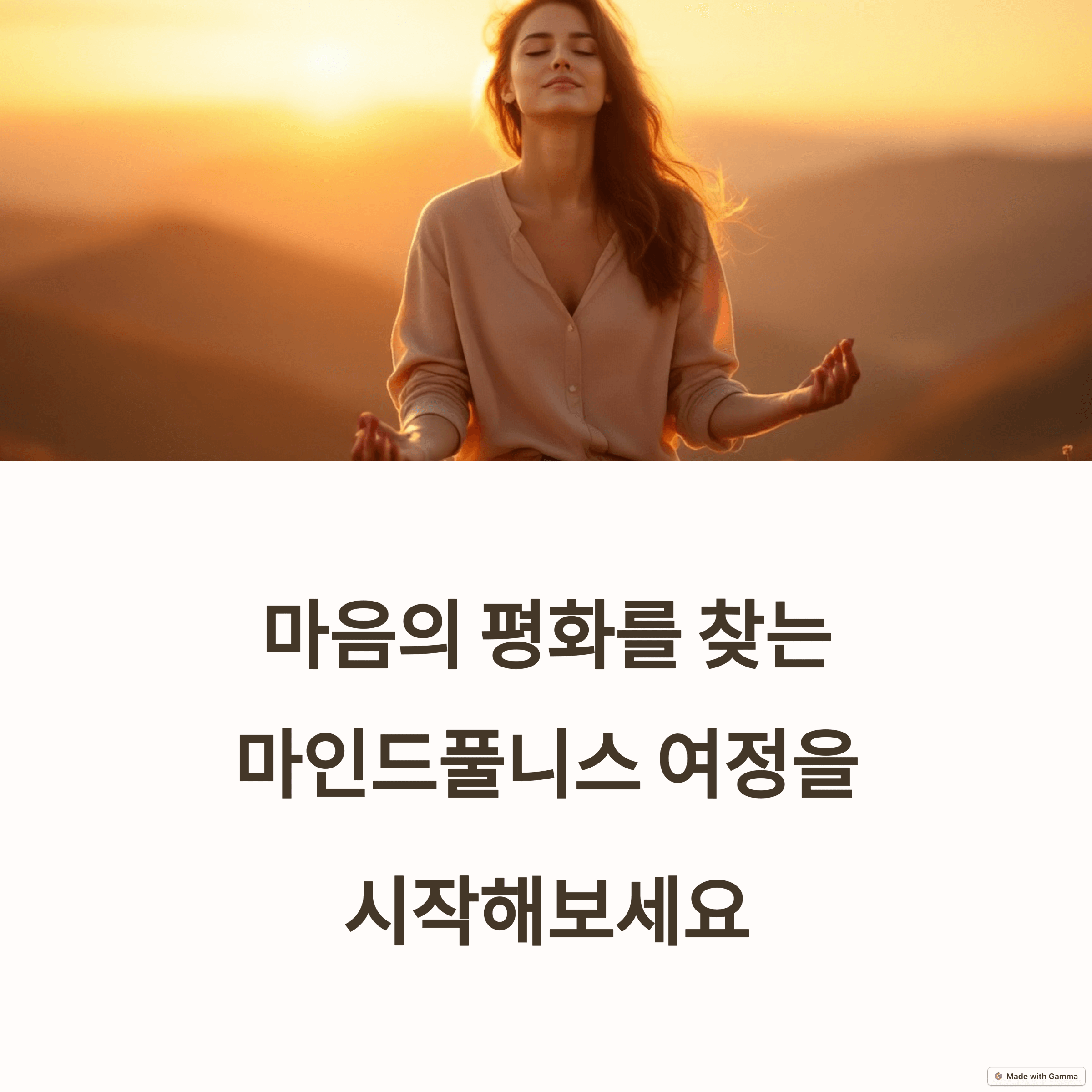 마인드풀니스 명상은 삶의 모든 영역에서 긍정적인 변화를 가져다줄 수 있는 강력한 도구입니다. 지금 바로 마음챙김 명상을 시작하여 마음의 평화를 찾고, 더욱 행복하고 의미 있는 삶을 만들어 보세요!