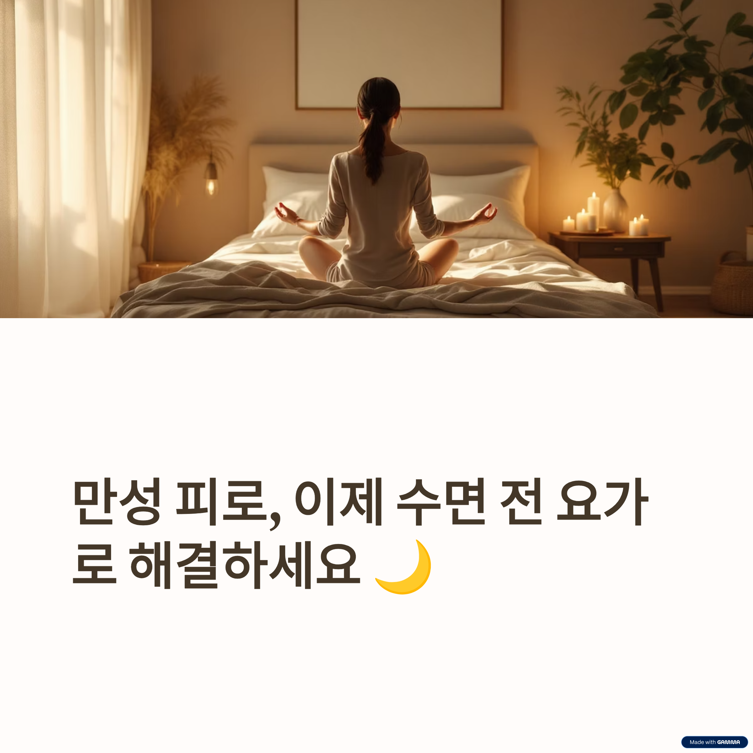 1. 수면 전 요가는 몸과 마음의 긴장을 풀어 만성 피로 개선에 탁월합니다.