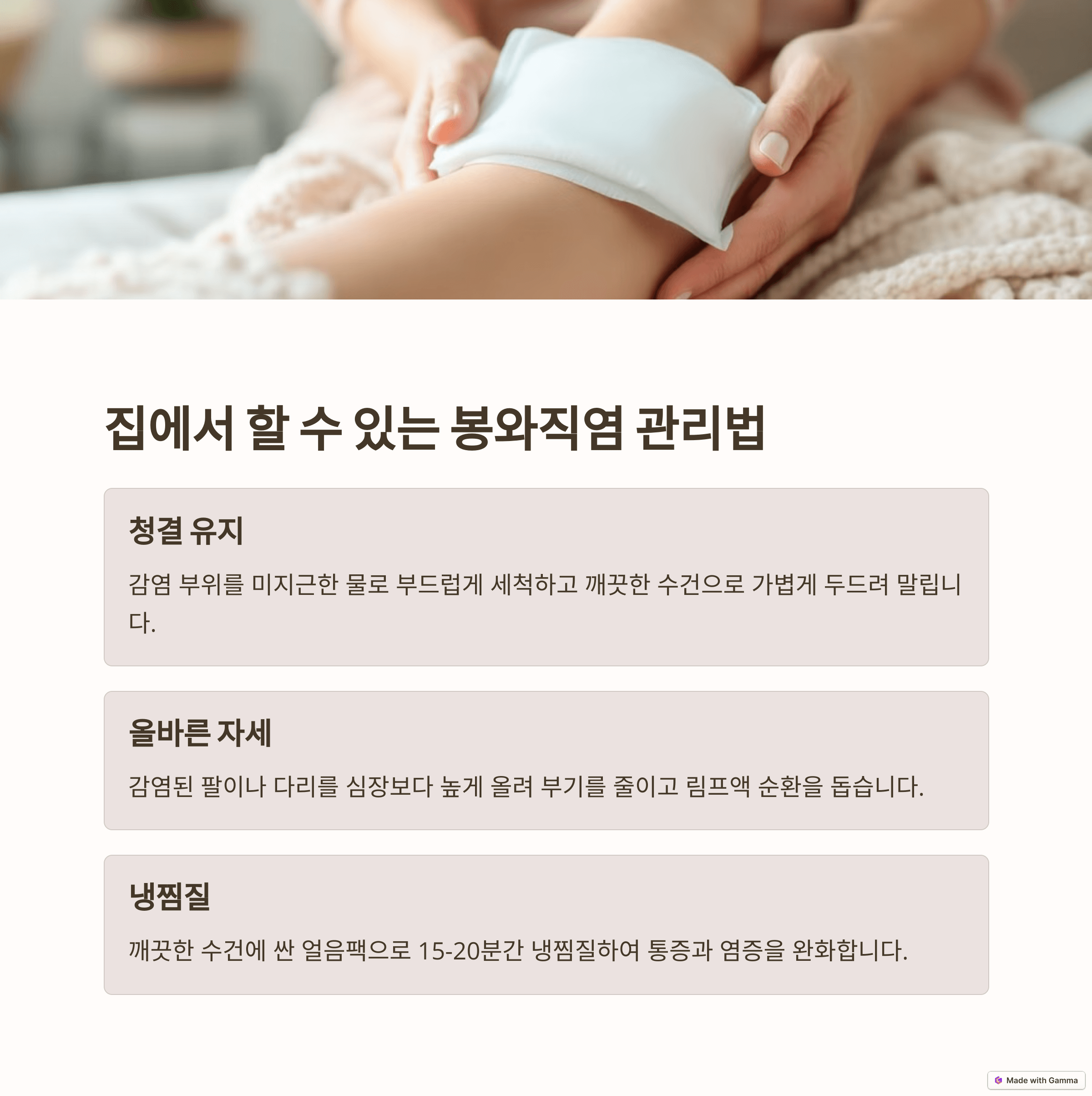 - 봉와직염, 어떻게 치료해야 할까요? (항생제 치료, 자가 관리법, 합병증)