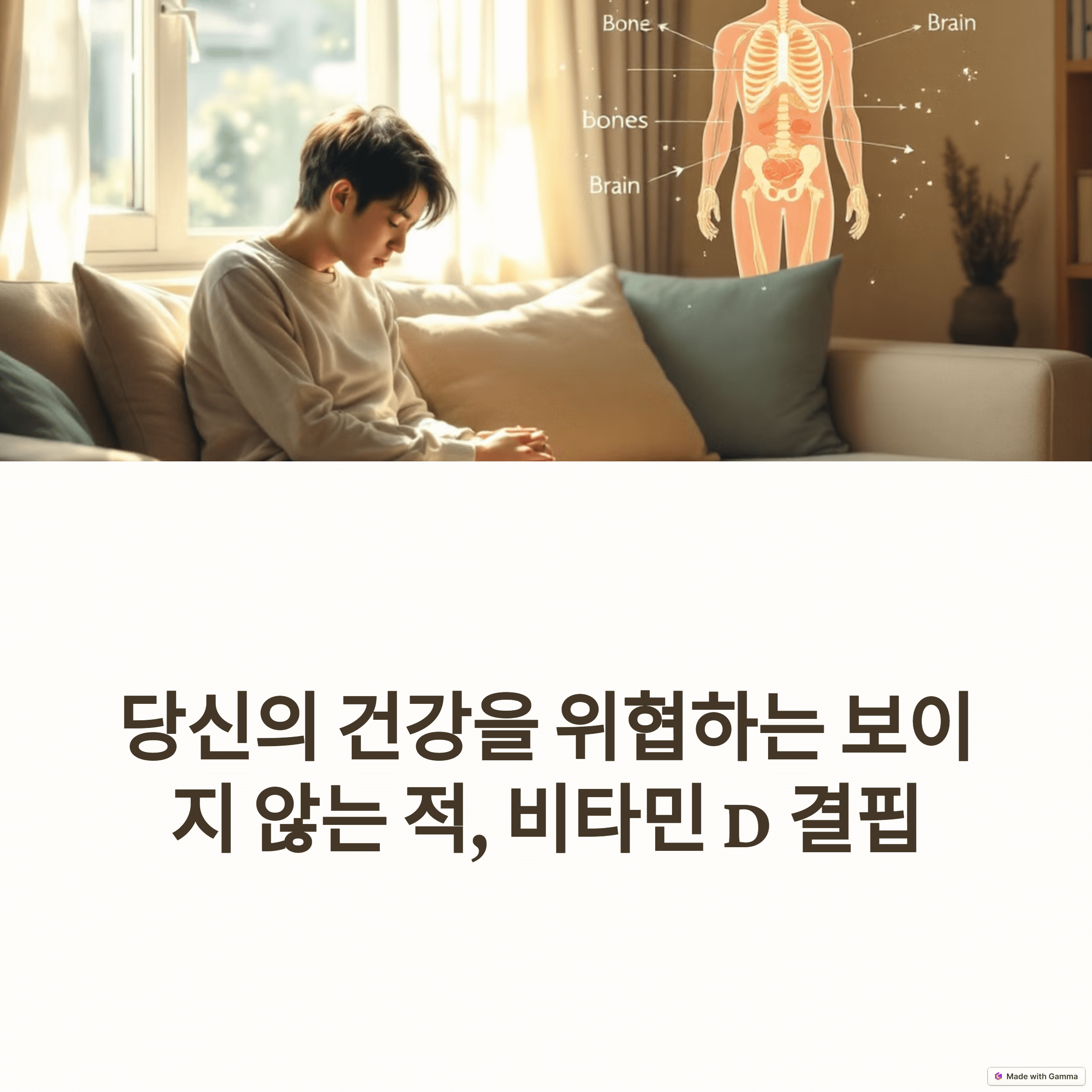비타민 D 결핍은 뼈 건강, 면역력, 정신 건강 등 다양한 측면에 부정적인 영향을 미칠 수 있는 흔한 문제입니다. 주된 원인으로는 햇빛 노출 부족, 특정 질환, 약물 복용 등이 있으며, 피로감, 뼈 통증, 우울감 등의 증상을 동반합니다. 비타민 D 결핍을 예방하고 건강을 유지하기 위해서는 적절한 햇빛 노출과 비타민 D가 풍부한 음식 섭취, 필요에 따라 건강기능식품을 섭취하는 것이 좋습니다.
