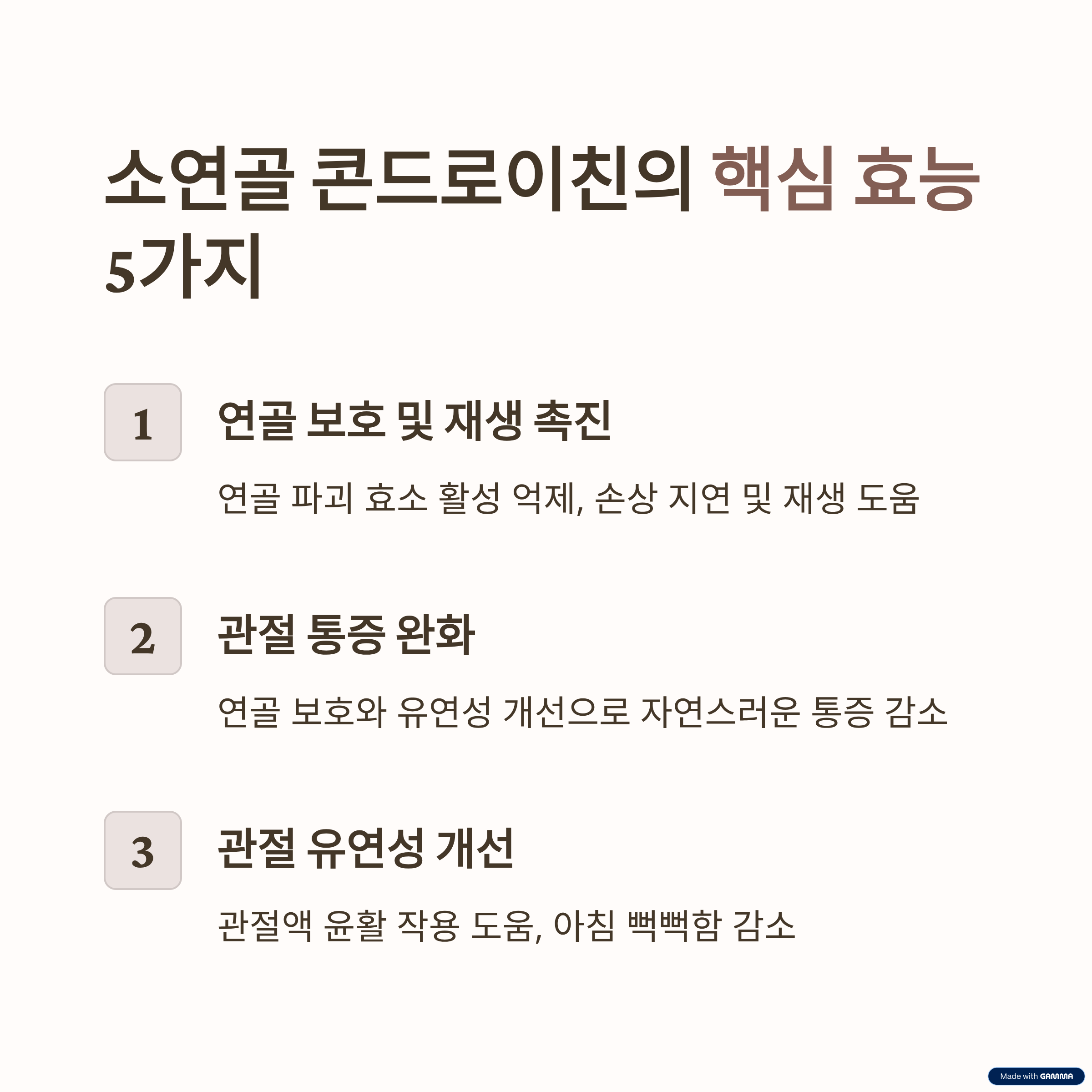 3. 소연골 콘드로이친, 어떤 효능을 기대할 수 있을까요? (핵심 효과 5가지)