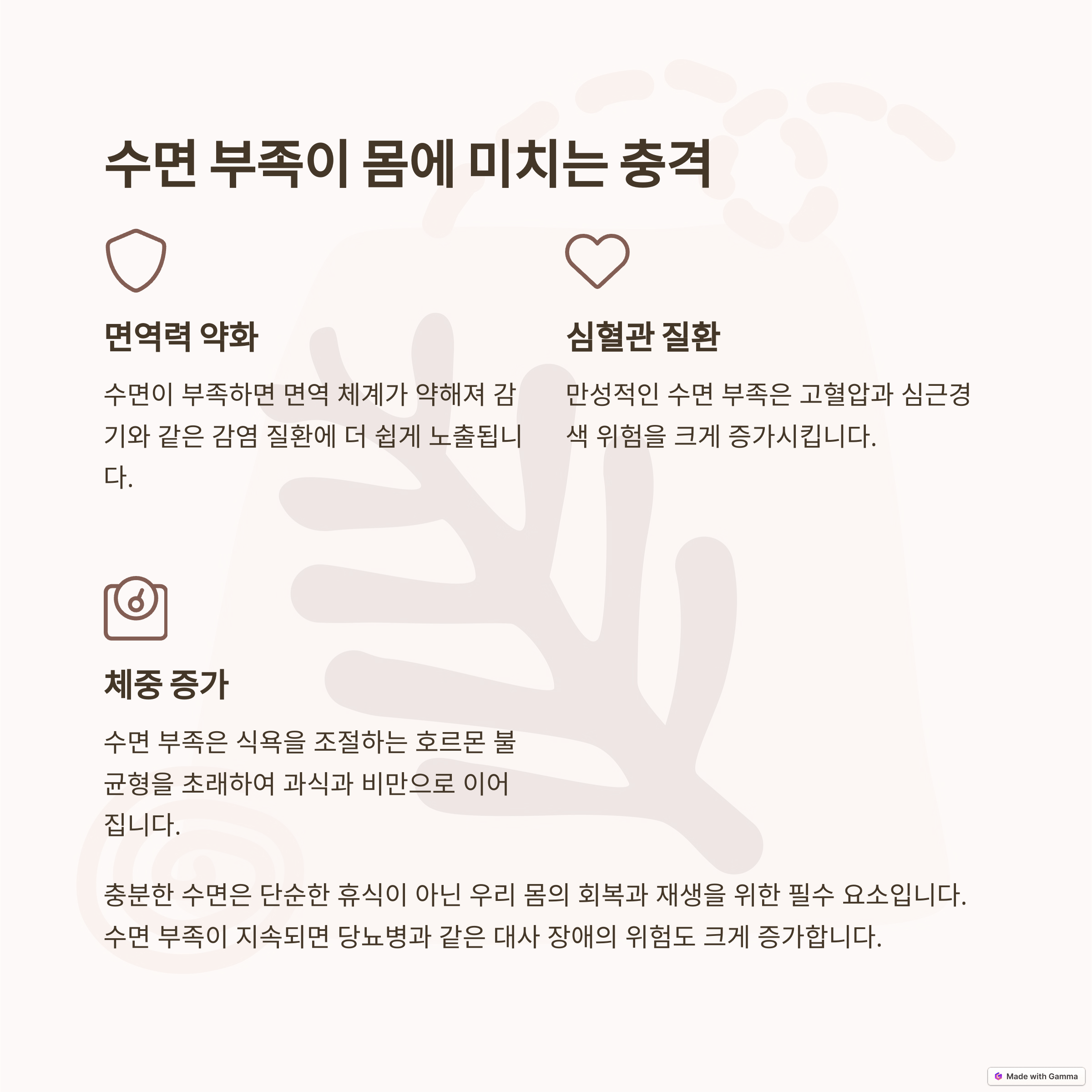 2. 수면 부족이 신체 건강에 미치는 구체적인 영향