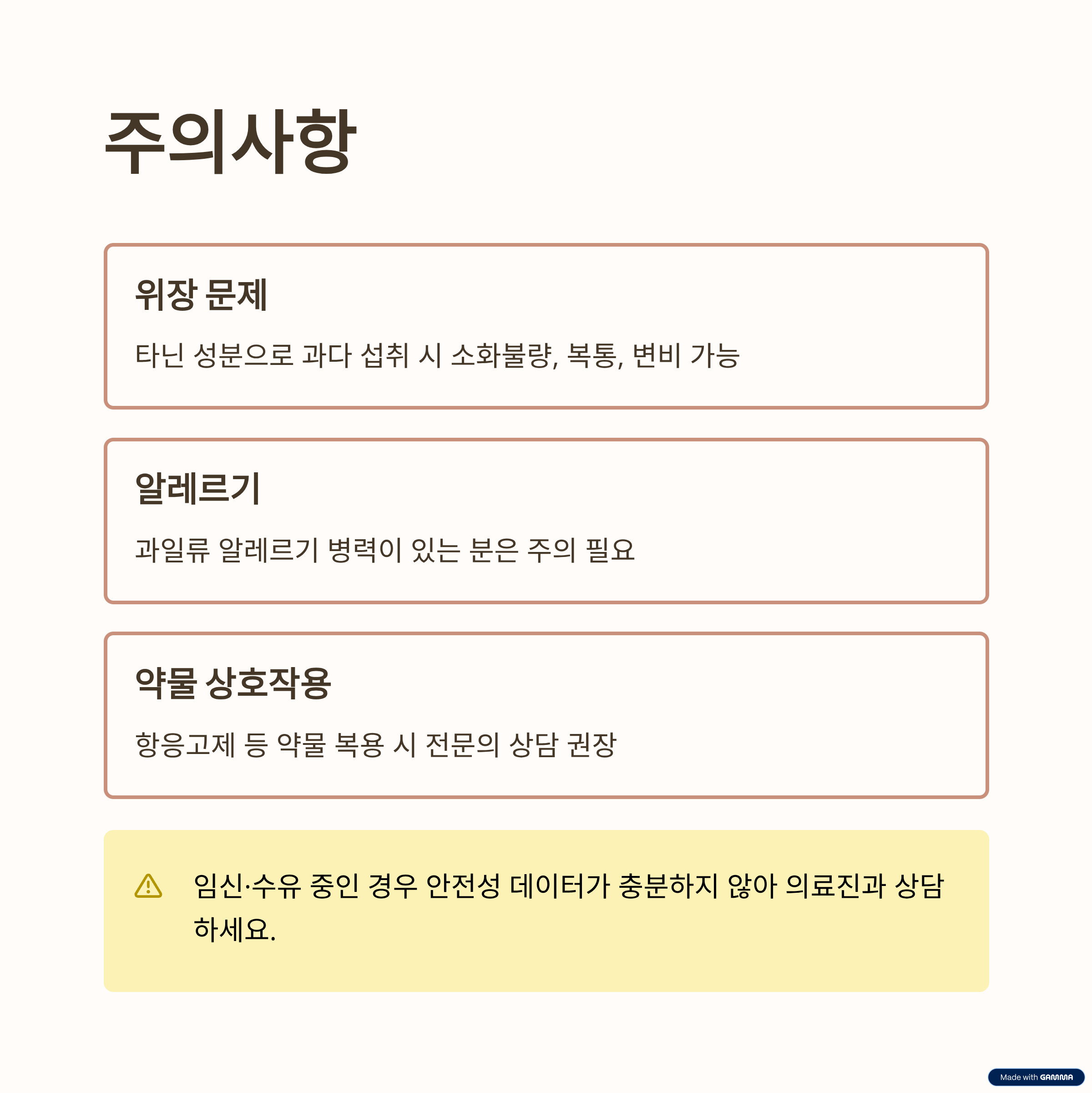 - 임신·수유·약물 복용자는 전문가와 상담 필요.