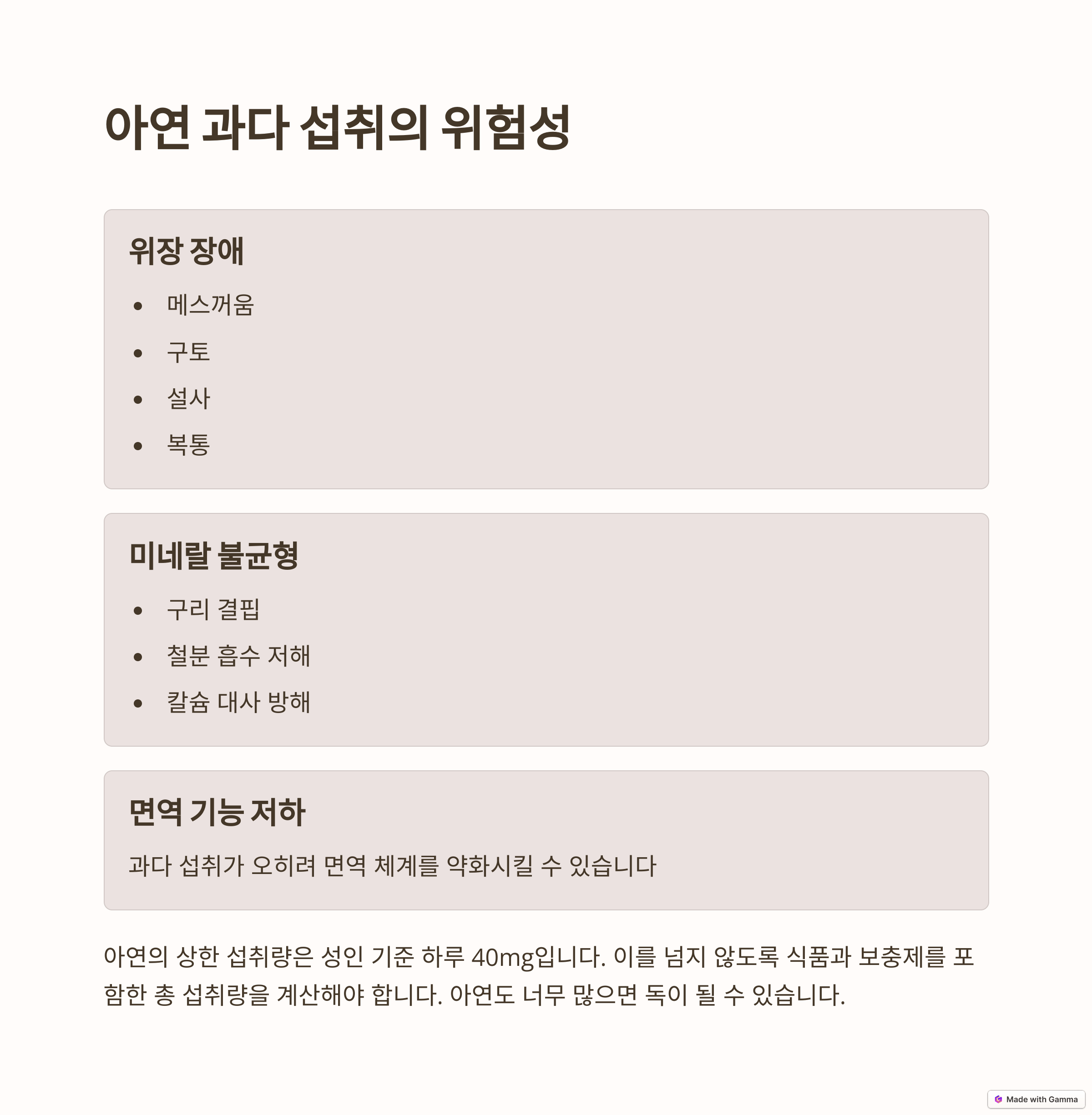 4. 아연 섭취 시 주의사항 - 과다 섭취 부작용 및 안전한 섭취법