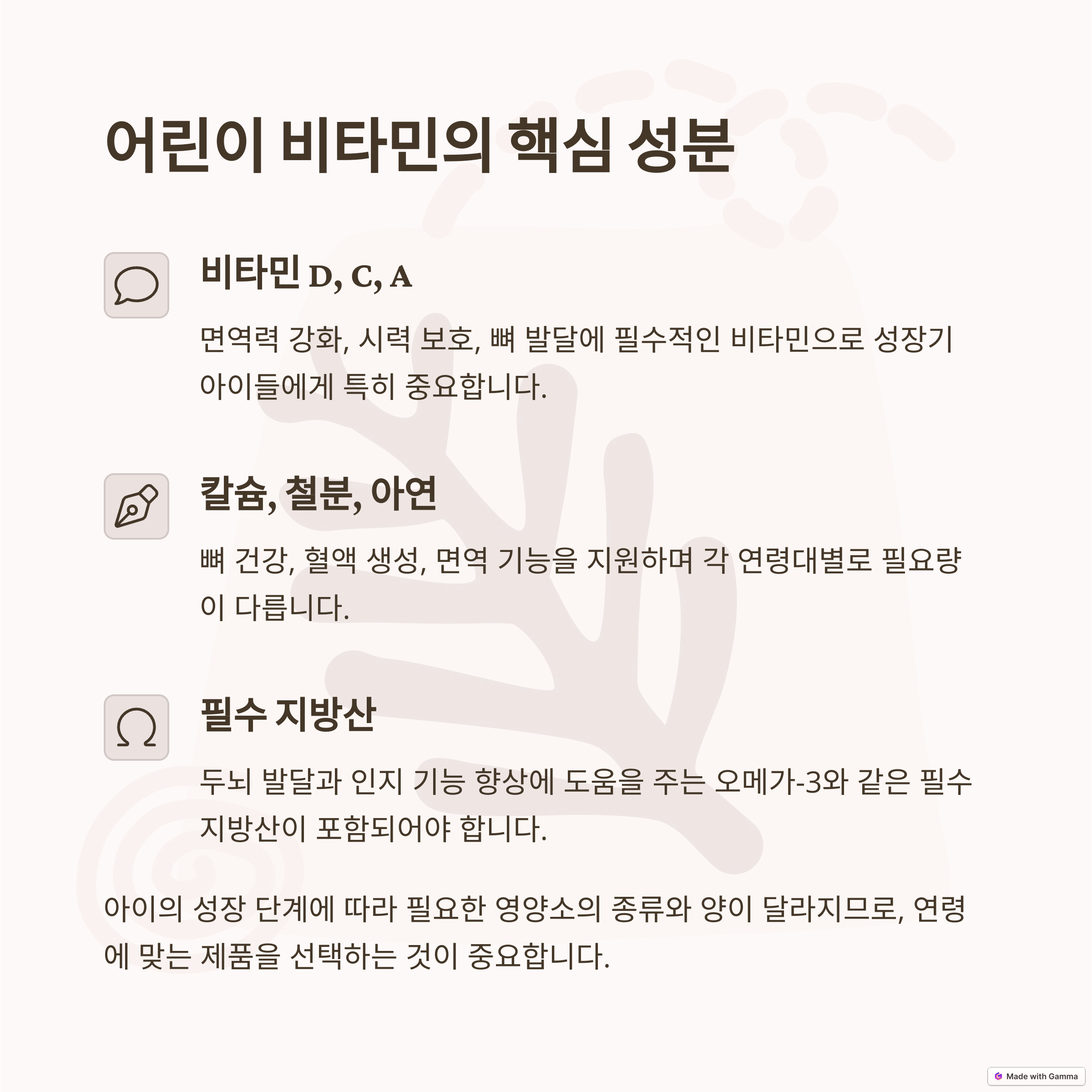 본 정보는 일반적인 내용이며, 특정 제품에 대한 광고가 아닙니다. 아이의 건강 상태에 따라 전문가와 상담 후 섭취를 결정하시기 바랍니다.