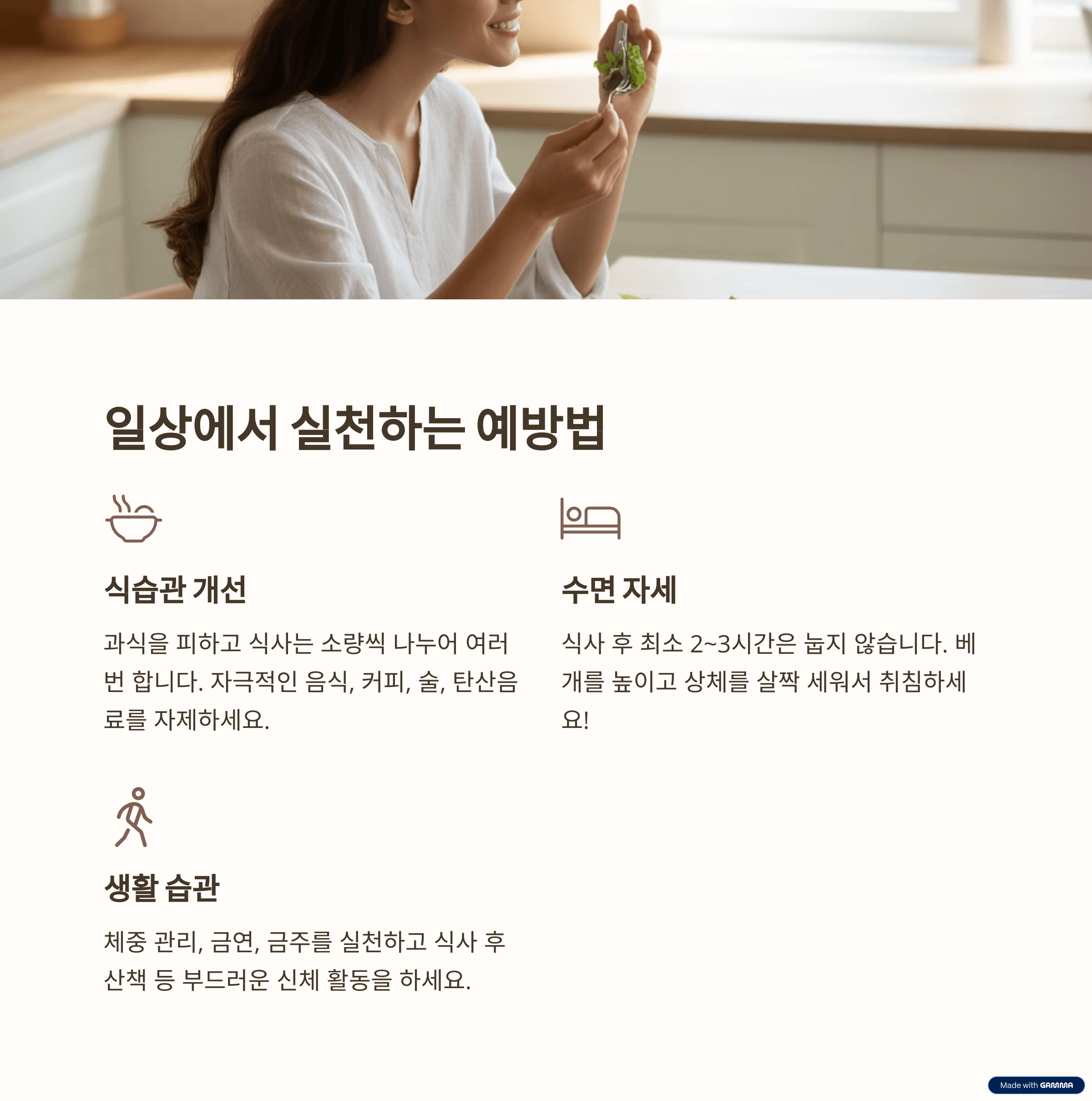 역류성 식도염은 생활습관 개선과 조기 진단 및 치료로도 충분히 관리할 수 있습니다.