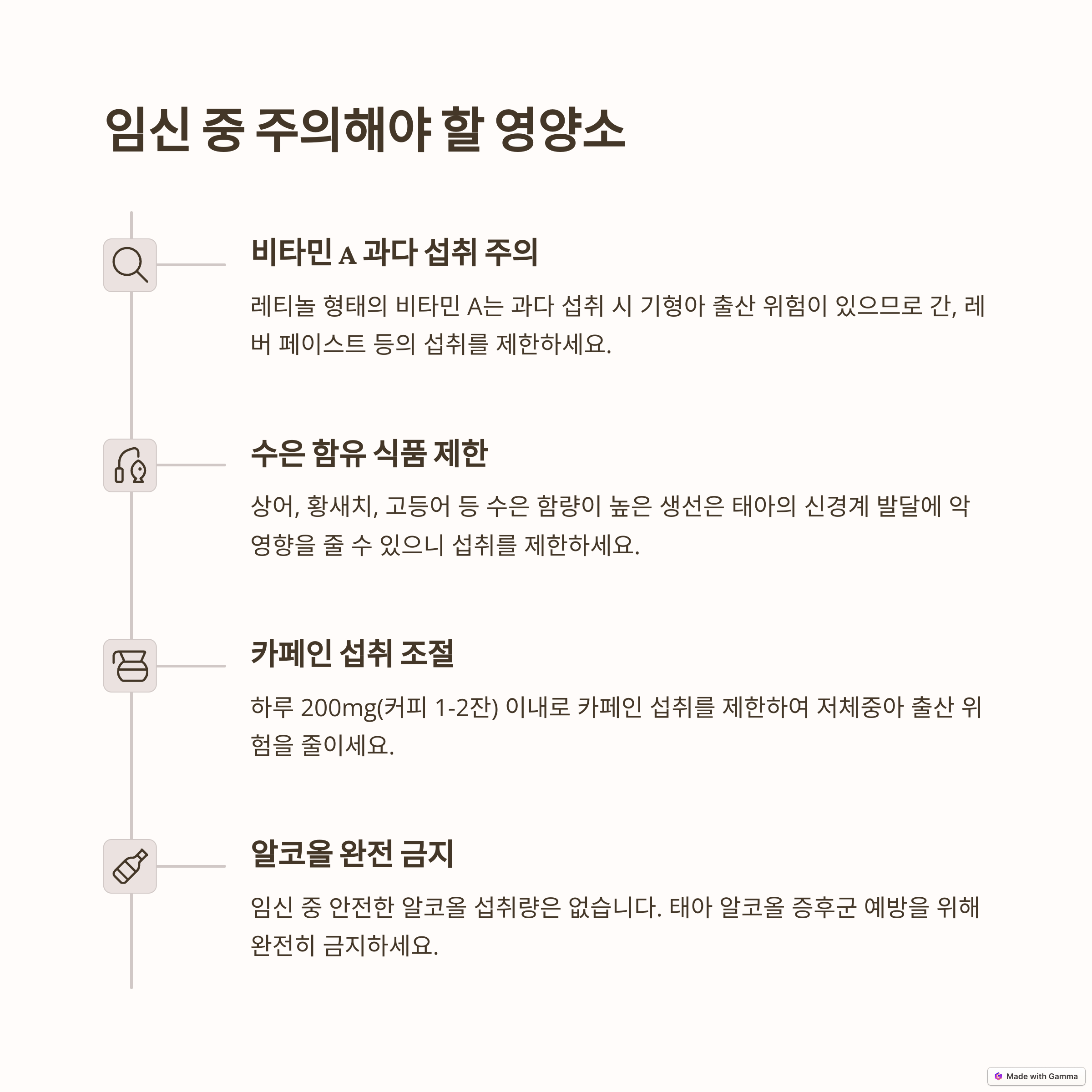 - 약물 복용 주의: 임신 중에는 약물 복용에 특히 주의해야 합니다. 의사 처방 없이 임의로 약물을 복용하는 것은 태아에게 위험할 수 있습니다. 반드시 의사 또는 약사와 상담 후 안전한 약물을 복용해야 합니다.