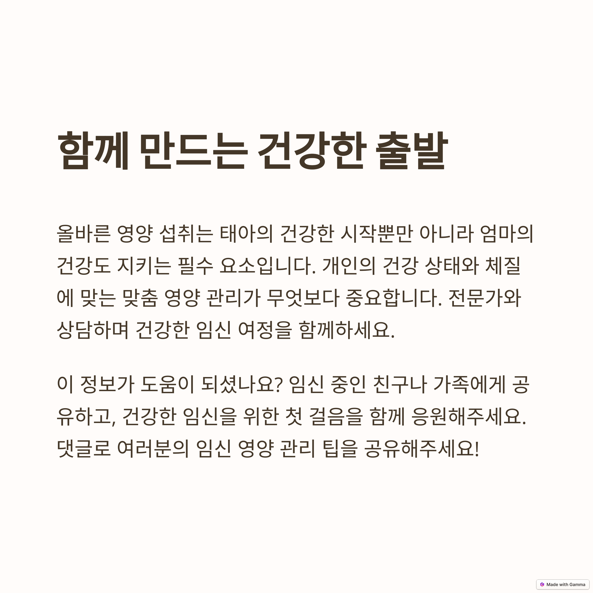 - 참고 자료: 임신 중 영양 섭취에 대한 더 자세한 정보는 다음 보건복지부 임신·출산 정보센터 링크에서 확인하실 수 있습니다.