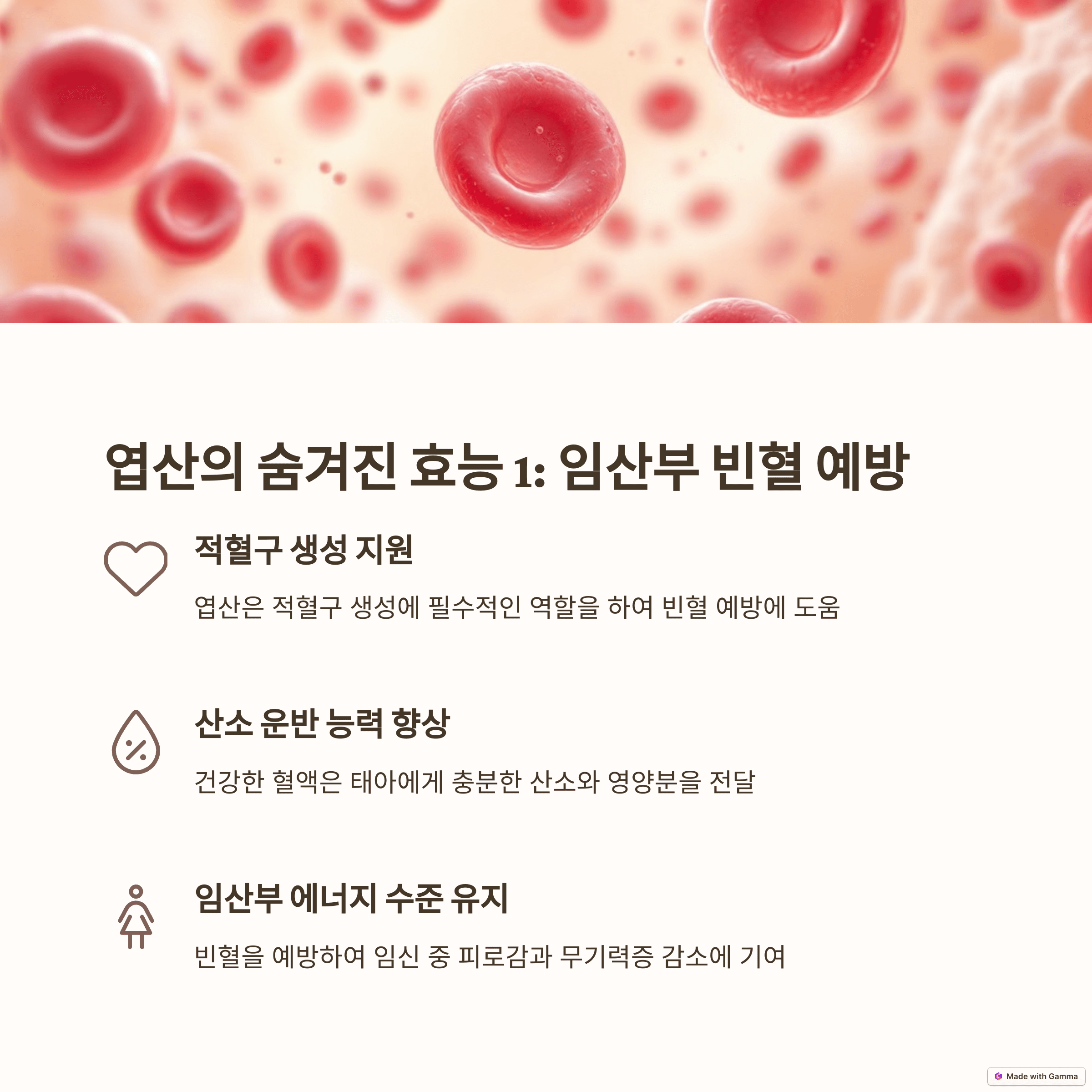 2. 임산부 빈혈 예방: 엽산은 적혈구 생성에 필수적인 영양소로, 임신 중 혈액량 증가로 인해 발생할 수 있는 빈혈 예방에 기여합니다. 충분한 엽산 섭취는 임산부의 건강 유지에 중요한 역할을 합니다.