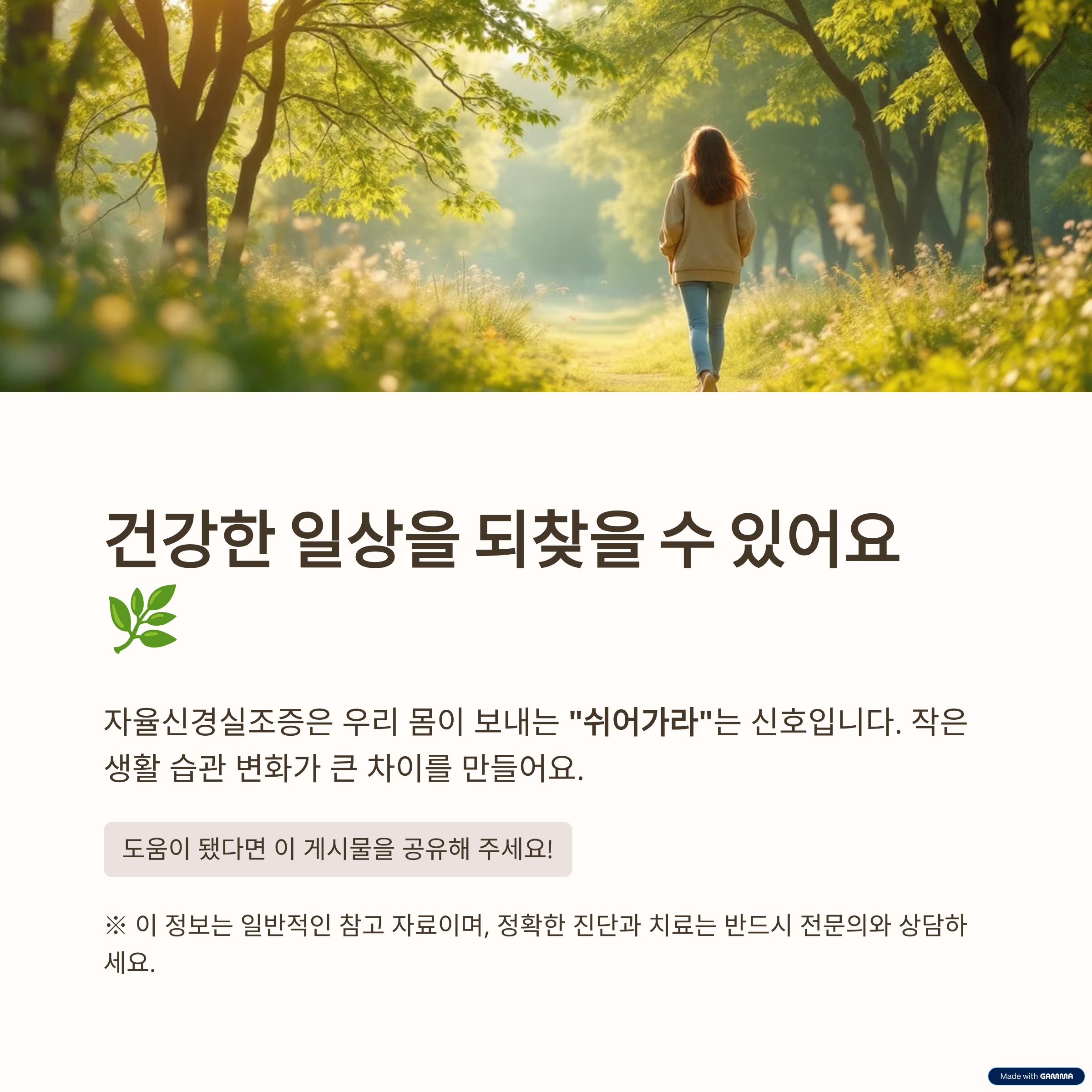 - 과로와 피로: 몸과 마음이 지치면 자율신경계도 함께 지쳐요.