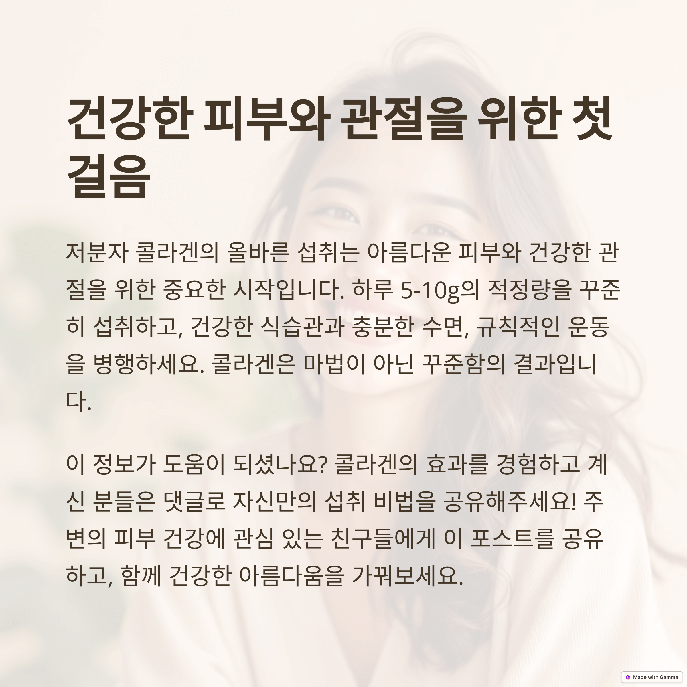 안녕하세요, 여러분. 콜라겐에 대한 관심이 높아짐에 따라 저분자 콜라겐의 흡수율과 그 효과에 대해 궁금하신가요? 이번 글에서는 저분자 콜라겐이 무엇인지, 왜 흡수율이 중요한지, 그리고 어떻게 섭취하면 좋은지에 대해 자세히 설명드리겠습니다.