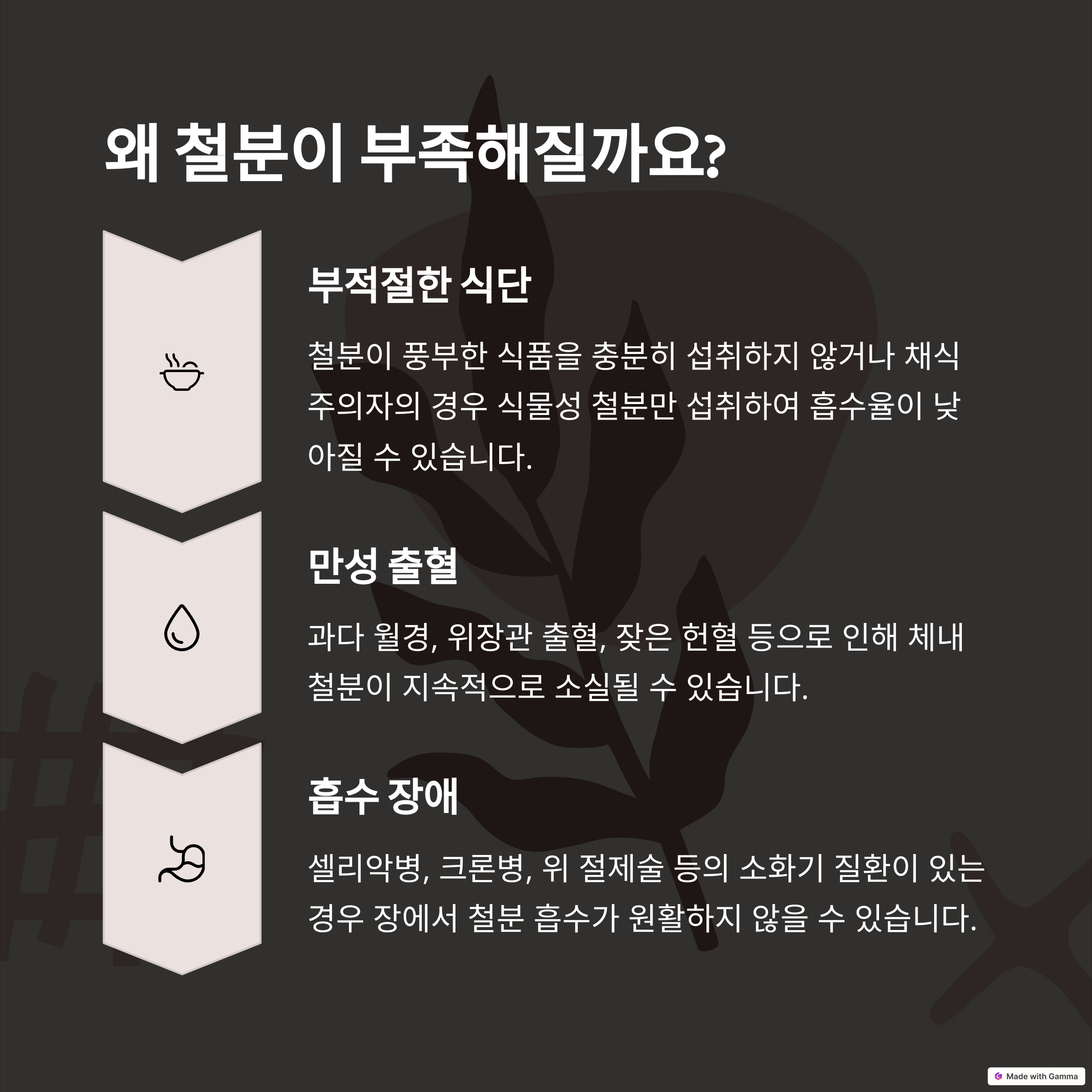 - 임신 합병증: 임산부의 철분 부족은 조산, 저체중아 출산, 산후 우울증 등의 위험을 높입니다.