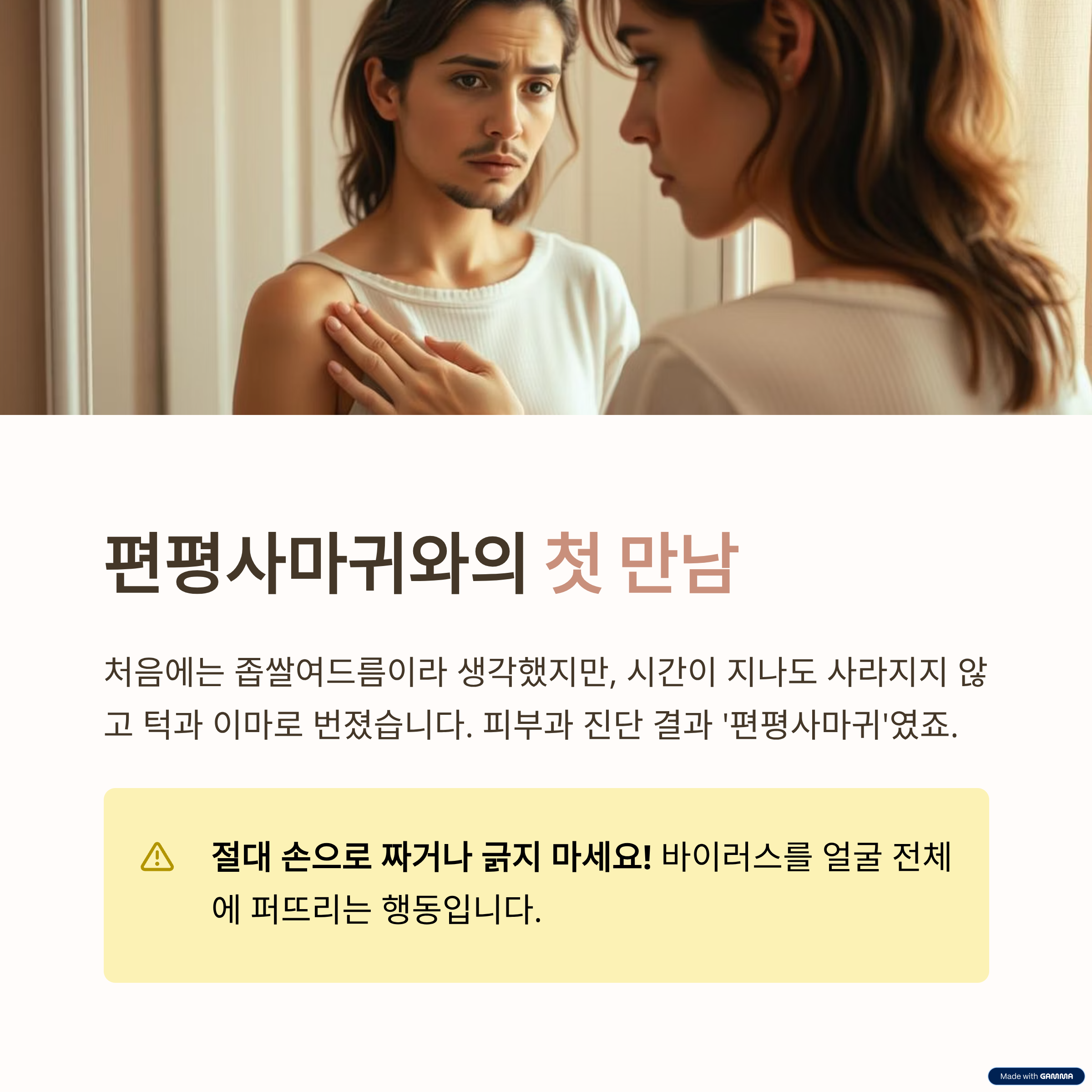 경험 스토리 훅: 아이를 키우며 제 몸을 돌볼 여유가 없던 어느 날, 거울 속 제 얼굴은 낯설기만 했습니다. 화장으로도 가려지지 않는 수십 개의 편평사마귀는 제 자신감을 갉아먹는 존재였죠.