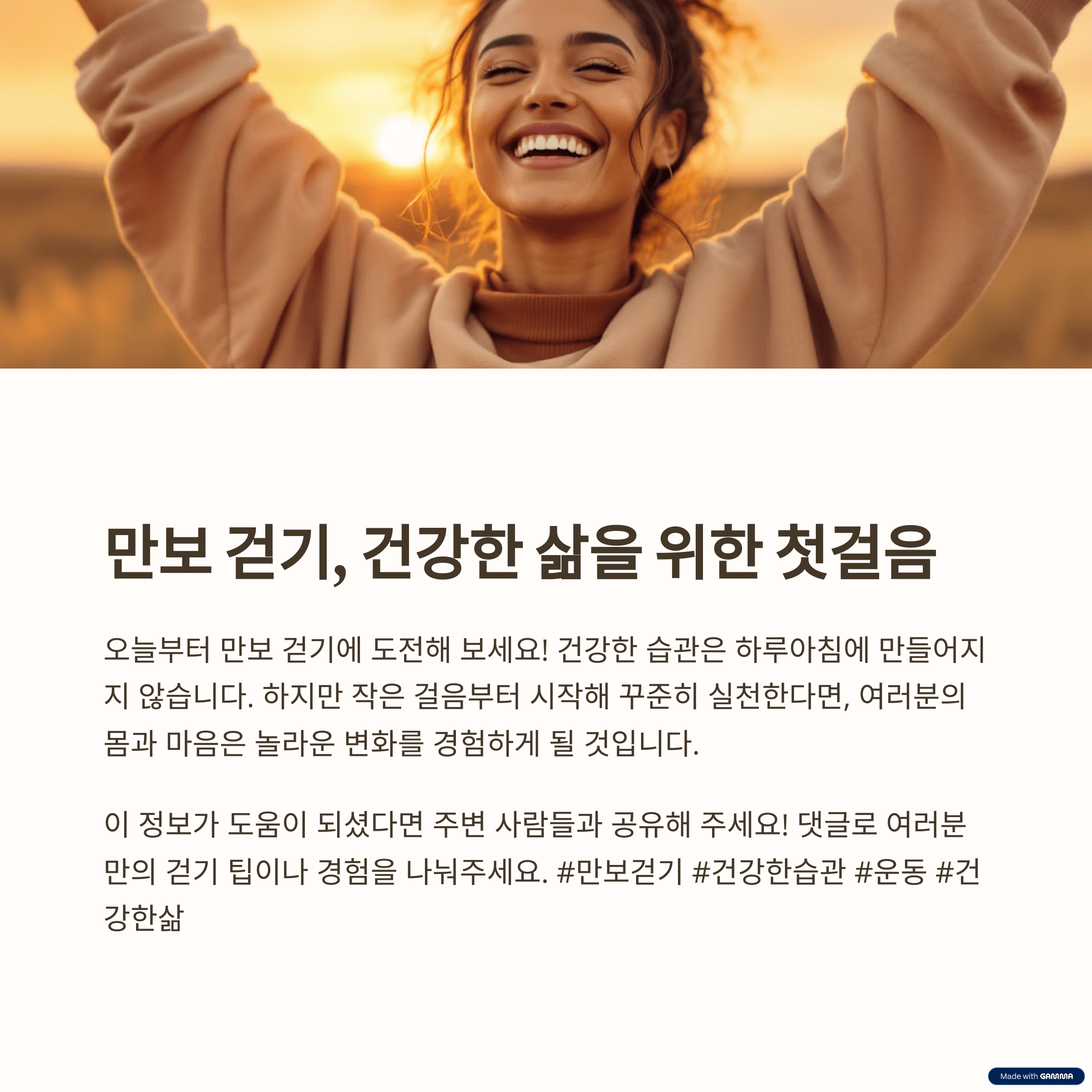 - 팁: 만보 걷기와 함께 균형 잡힌 식단을 유지하면 체중 관리 효과를 더욱 높일 수 있습니다.
