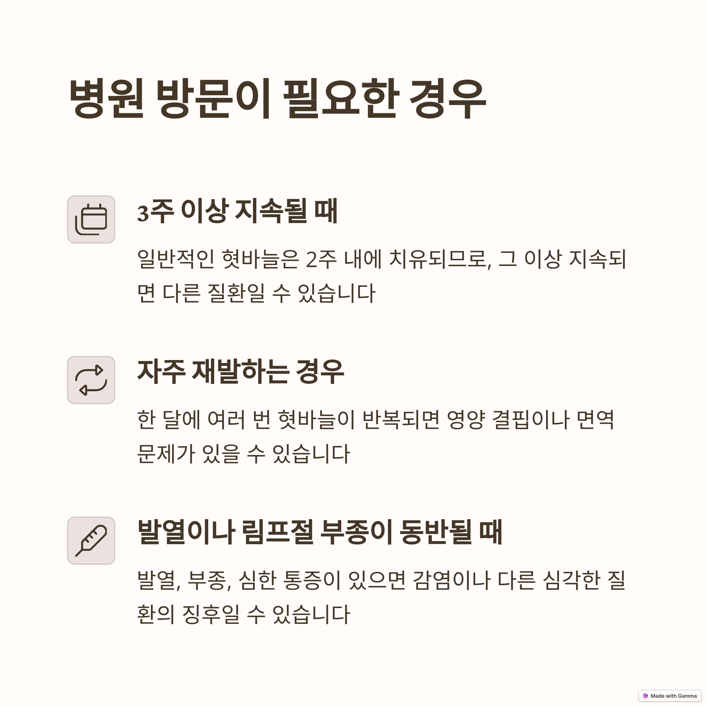 - 혓바늘 외에 다른 증상이 동반될 때 (발열, 몸살 등)