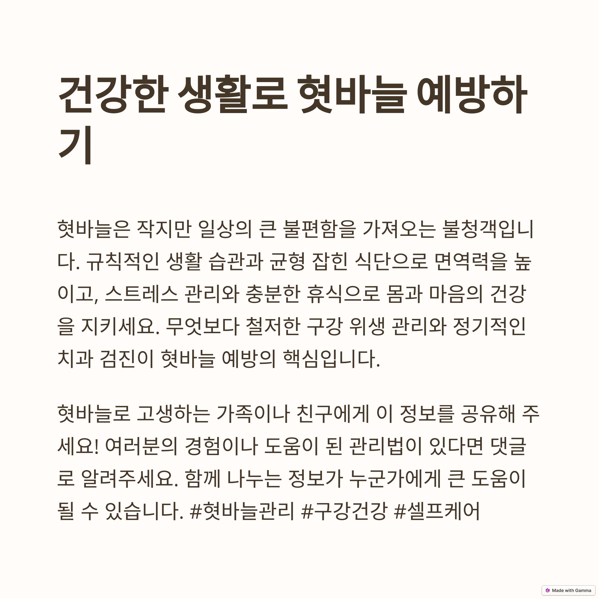 - 생활 습관 개선 프로젝트: 혓바늘 예방 가이드