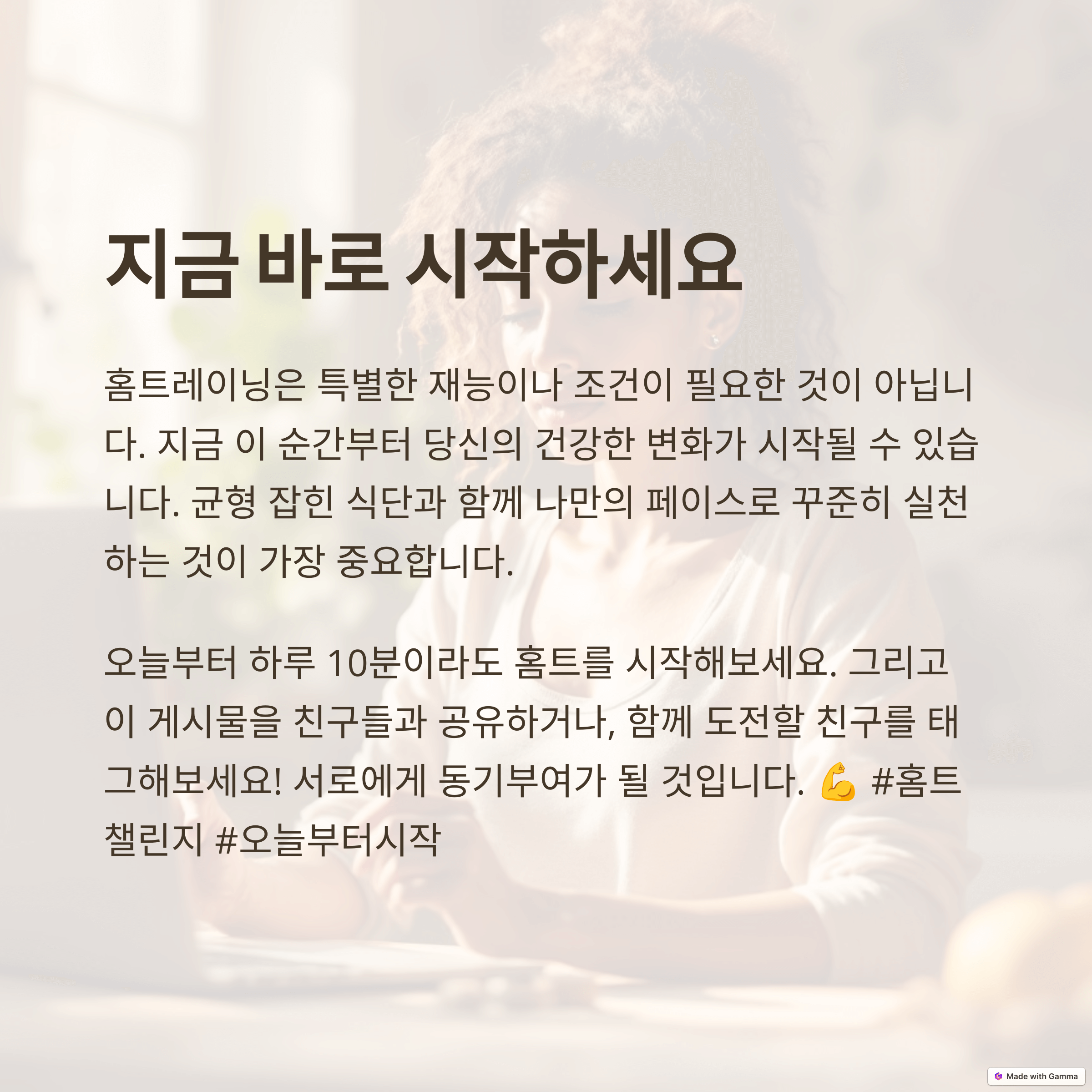 여러분의 홈트 성공을 응원합니다! 궁금한 점은 언제든지 댓글로 질문해주세요!