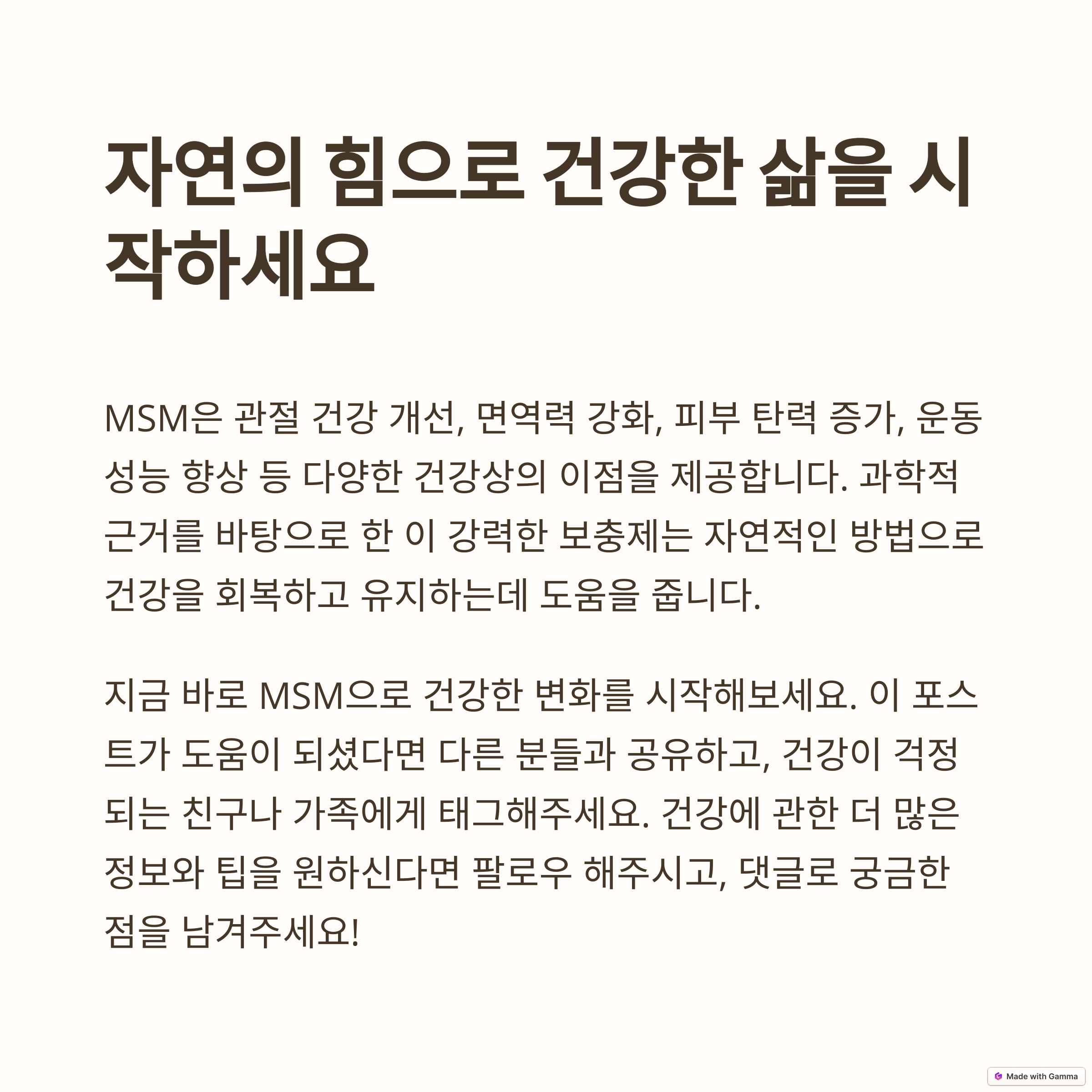 - MSM의 놀라운 효능: 과학적 근거와 추가 연구
